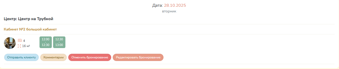 - Можно отредактировать забронированные слоты, после начала времени аренды кабинета.