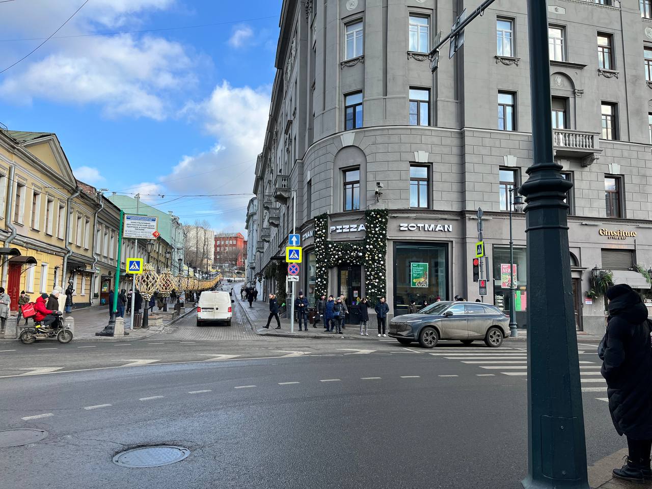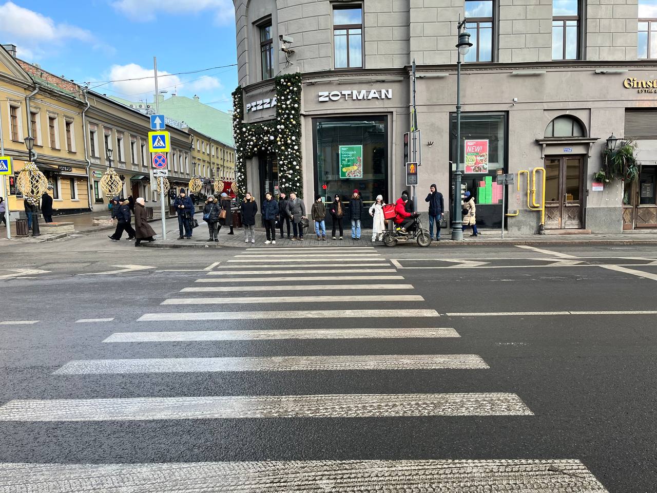 После выхода из метро поворачиваете направо и идёте до перекрёстка со светофором