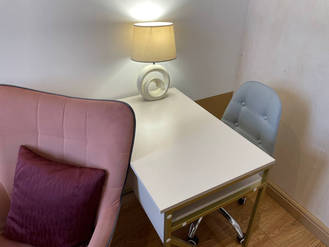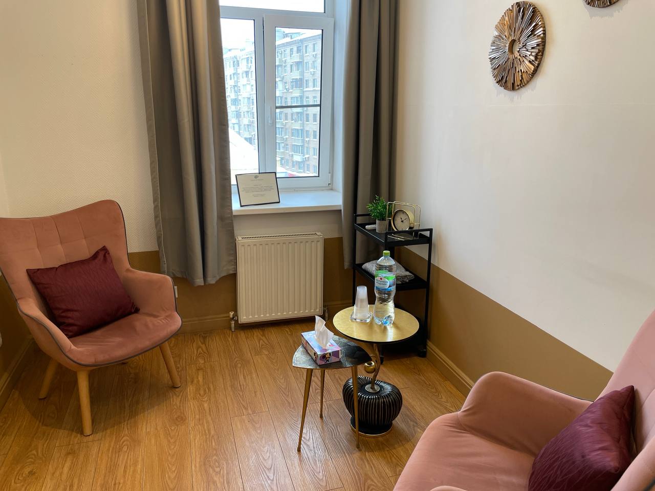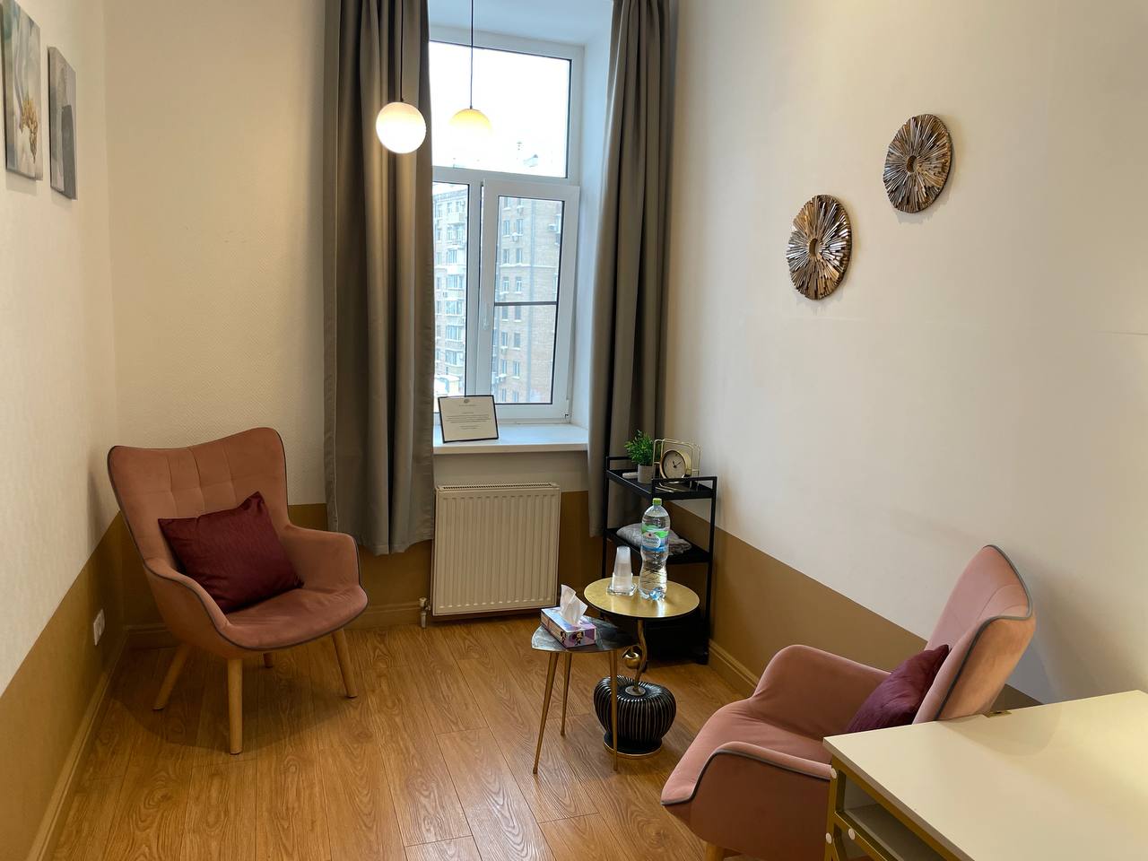 Кабинет 2.1 предназначен для индивидуальной и семейной психотерапии и консультаций. Кабинет включает в себя рабочий стол с удобным офисным стулом. Есть зона для индивидуальной работы с двумя креслами.
