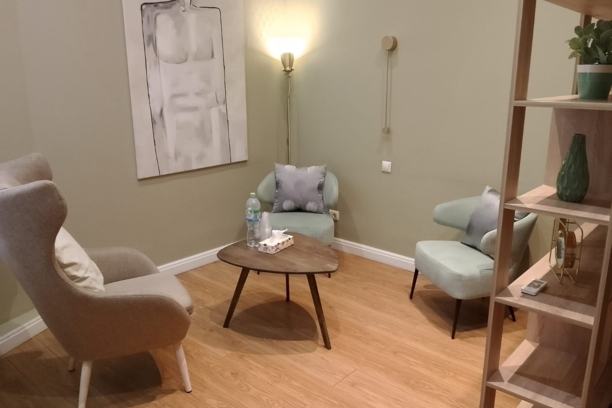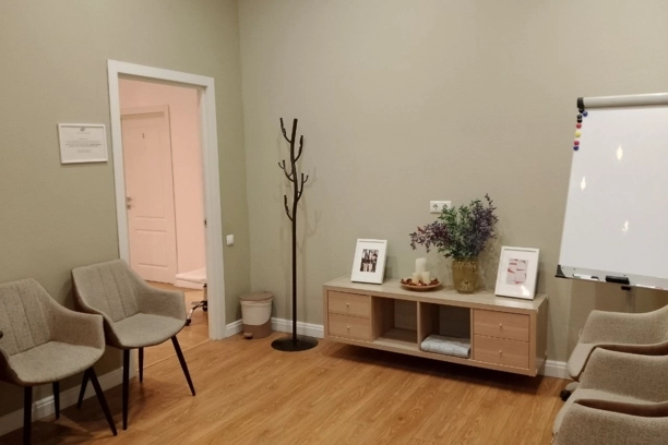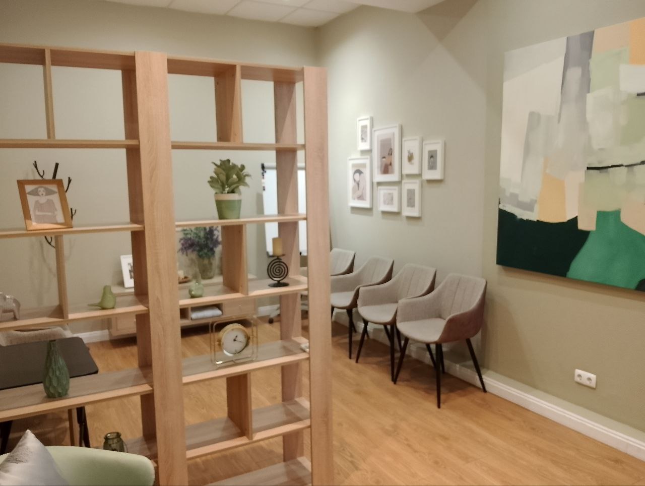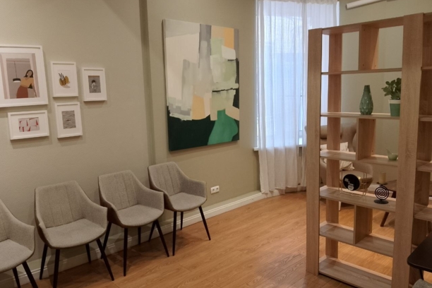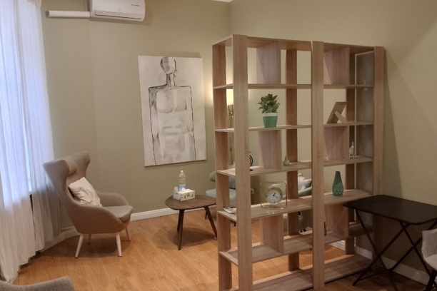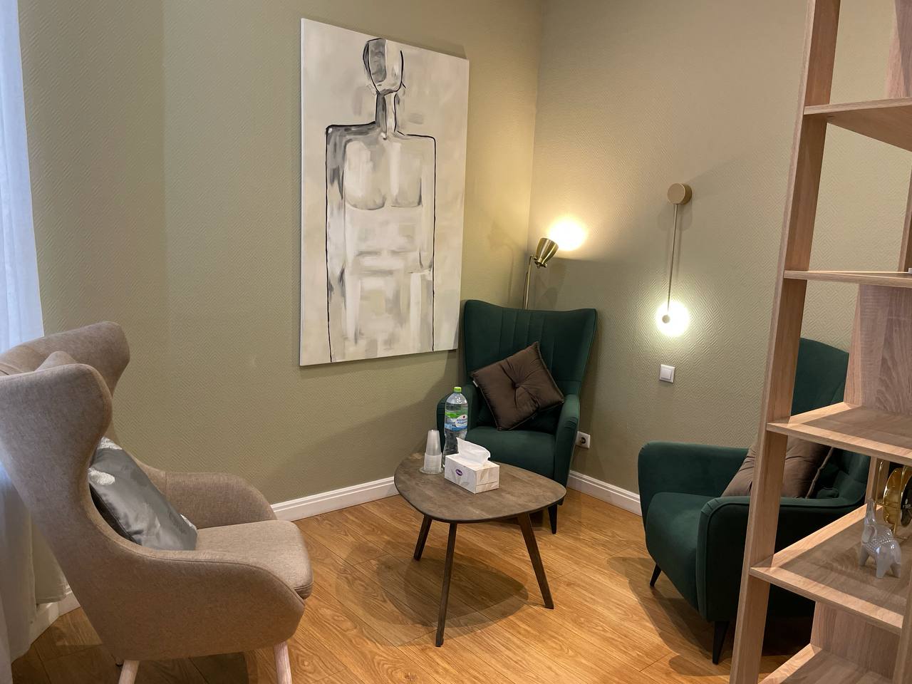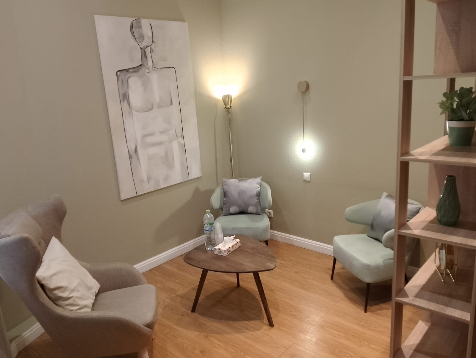 Преимущества нашего кабинета «Кремовый»: Зал трансформер идеально подходит для индивидуальных, семейных консультаций, а так же для работы с группой до 8 человек. Зал трансформер — это значит можно увеличить пространство, если передвинуть стеллаж-перегородку.