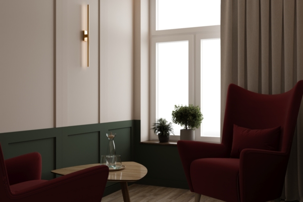 Бордовый кабинет предназначен для проведения индивидуальных консультаций, однако, он достаточно просторный, что позволяет поставить третье кресло для проведения семейных консультаций.