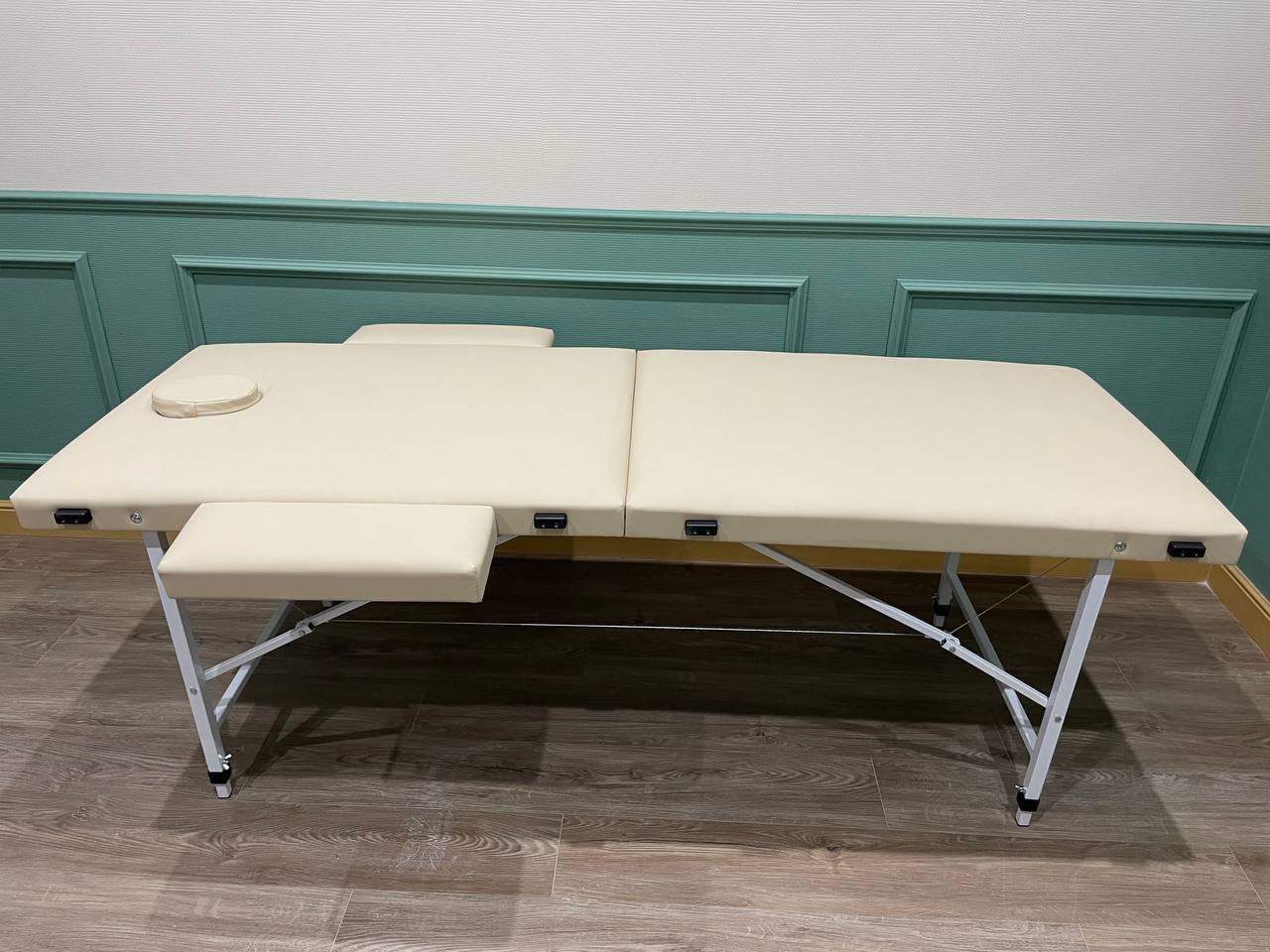 Высота регулируется от 65 до 85 см. Максимальная нагрузка 200 кг. Одноразовые простыни выдаем, спросить у администратора.